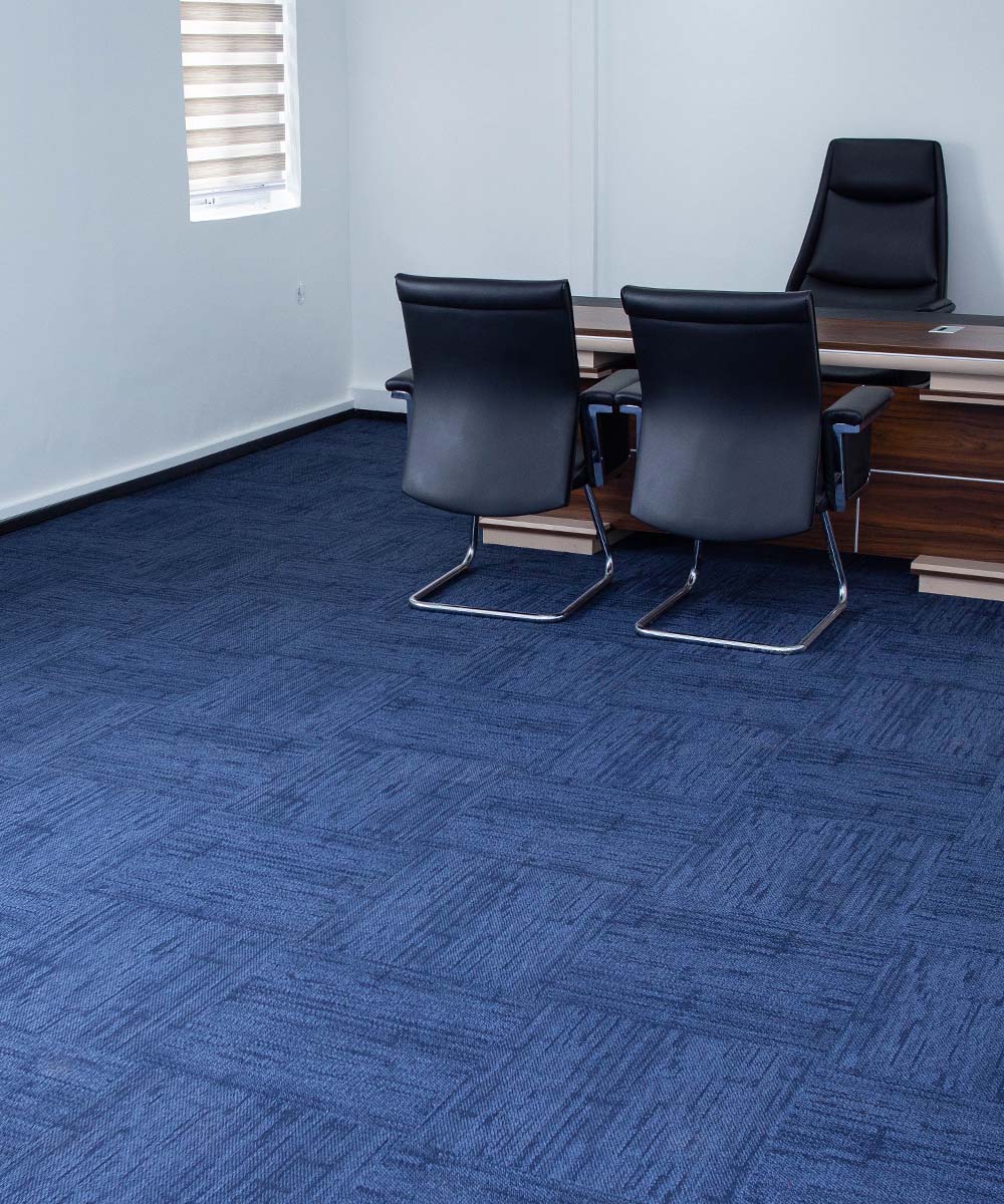 Our clients preferred using Dusky blue for their office. The installation process took about 2 days. The entire first floor of the building which had a ceramic tile subfloor received our products. We used a water based adhesive glue for the project.